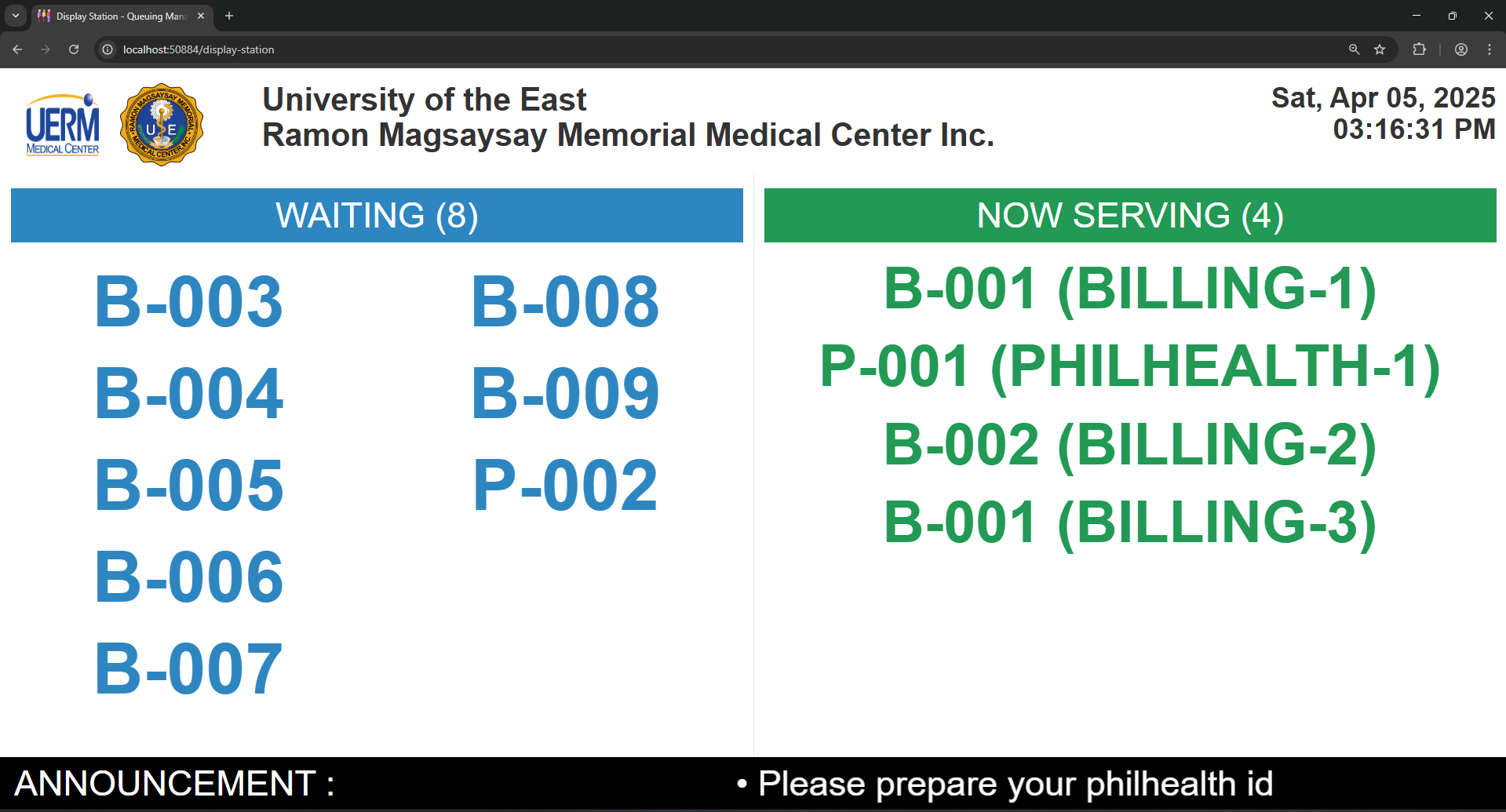 - Queuing Management System - Billing Department